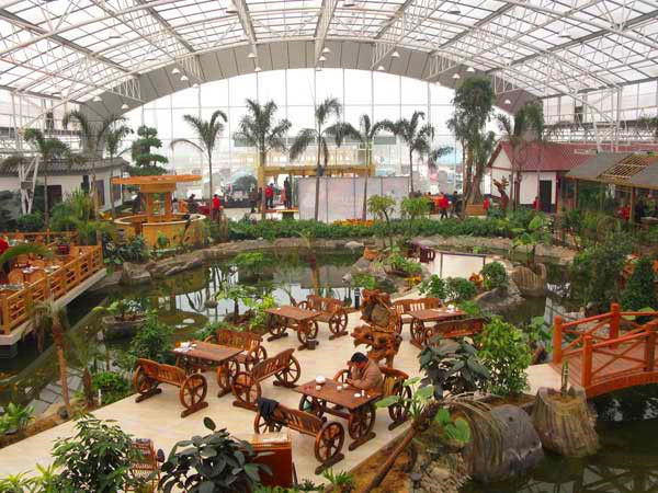 溫室特點:我公司秉承多年承建溫室的經驗,大膽探索溫室的新用途,開“生態餐廳”之先河,率先在北京、青島等地承建了生態餐廳,并為客戶贏得了可觀的經濟收益。