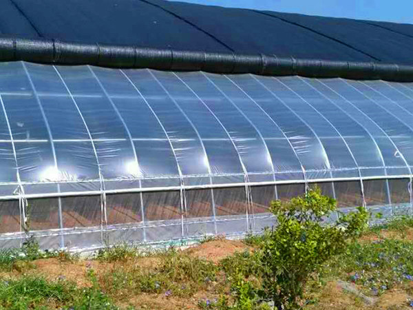 日光溫室主要由圍護(hù)墻體、后屋面和前屋面三部分組成,簡稱日光溫室的“三要素”,其中前屋面是溫室的全部采光面,白天采光時段前屋面只覆蓋塑料膜采光,當(dāng)室外光照減弱時,及時用活動保溫被覆蓋塑料膜,以加強(qiáng)溫室的保溫。
