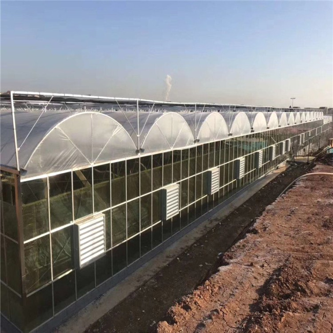 連棟薄膜溫室主要是以薄膜作為覆蓋材料的連棟溫室。一棟完整的連棟薄膜溫室主要包括溫室土建基礎部分、主體熱鍍鋅鋼骨架、外遮陽熱鍍鋅鋼骨架、覆蓋材料、外遮陽系統、內保溫系統、濕簾-風機降溫系統、頂部及四周卷膜開窗系統、噴淋系統、配電系統、排水系統等。 連棟薄膜溫室采用熱鍍鋅鋼制骨架、頂部及四周采用雙層高保溫長壽無滴塑料膜,四周也可采用國產聚碳酸酯板材料,是溫室中一種簡單的保溫節能形式,它有保溫性能良好、操作簡便等優點,適合于花卉種植、種苗繁育、花卉市場、科研、教學等,是以后溫室節能保溫技術的一個發展應用方向。