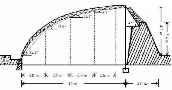 日光溫室主要由圍護(hù)墻體、后屋面和前屋面三部分組成,簡(jiǎn)稱日光溫室的“三要素”,其中前屋面是溫室的全部采光面,白天采光時(shí)段前屋面只覆蓋塑料膜采光,當(dāng)室外光照減弱時(shí),及時(shí)用活動(dòng)保溫被覆蓋塑料膜,以加強(qiáng)溫室的保溫。