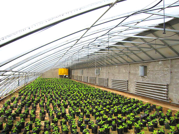 前坡面夜間用保溫被覆蓋,東、西、北三面為圍護(hù)墻體的單坡面塑料溫室,統(tǒng)稱為日光溫室。其雛型是單坡面玻璃溫室,前坡面透光覆蓋材料用塑料膜代替玻璃即演化為早期的日光溫室。日光溫室的特點(diǎn)是保溫好、投資低、節(jié)約能源,非常適合我國(guó)經(jīng)濟(jì)欠發(fā)達(dá)農(nóng)村使用。